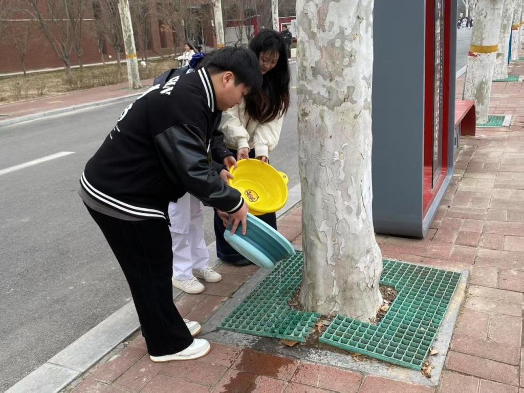 活动当日同学们热情高涨,有序分组协作。大家端着盛满水的水盆,往返穿梭在校园之中,小心翼翼地将水浇在树根处,眼神中满是对树木成长的期待与关切,活动现场欢声笑语声不断,气氛融洽温暖。