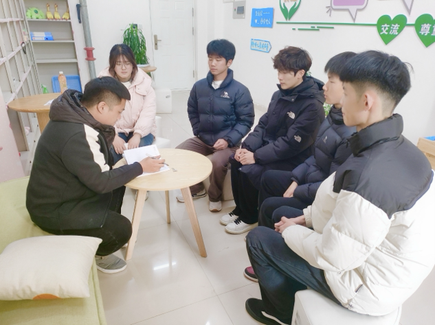 2024年12月20日,bw必威西汉姆联官方网站员工第三党支部党员教师胡泽兵在B323对递交入党申请书的员工们开展谈心谈话活动。