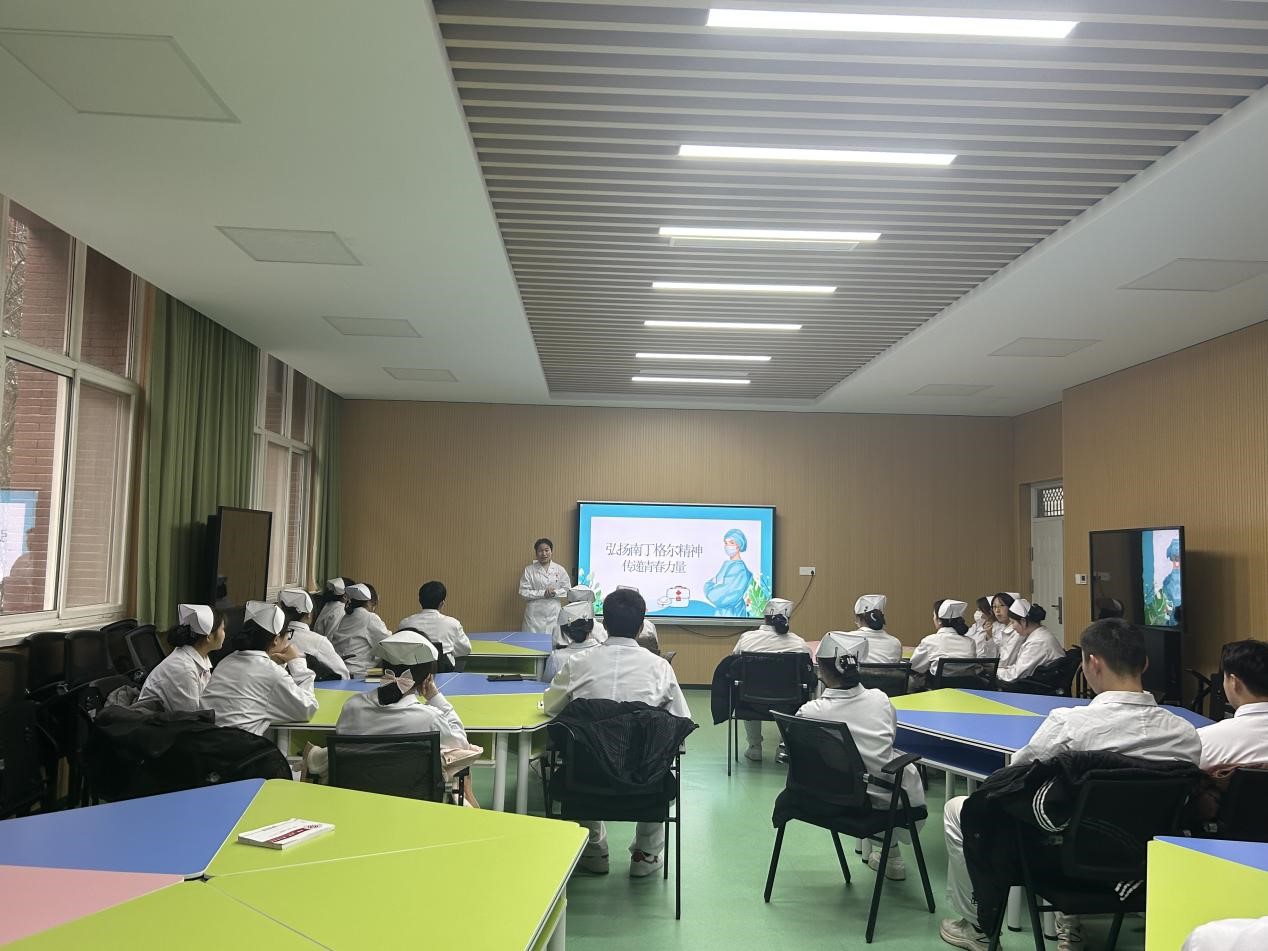 张献芳老师围绕“弘扬南丁格尔精神”这一主题,向同学们讲述了南丁格尔的个人经历、介绍了南丁格尔的伟大贡献,宣讲南丁格尔不朽的精神。并让同学们观看了南丁格尔奖章获得者博士生导师赵庆华教授的事迹,赵教授致力于老年护理事业,提倡“让老人病的轻、老的慢、活得好、得善终”的护理目标。通过赵教授的事迹再一次为同学们诠释了南丁格尔大爱无边的人道主义精神,树立了矢志不渝、守护生命的白衣天使形象,带给了同学们奋发向上的动力。