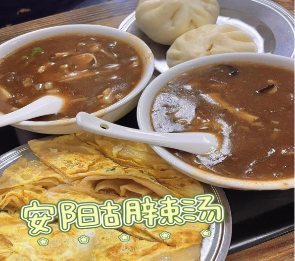 河南安阳市胡辣汤又名糊辣汤,属于豫菜系。 由多种天然中草药按比例调配而成,具有补气养血、温补脾胃、驱风散寒、调中开胃、安神补脑等功效。 是河南小吃中的"四大天王"之一,是中原美食中的瑰宝。
