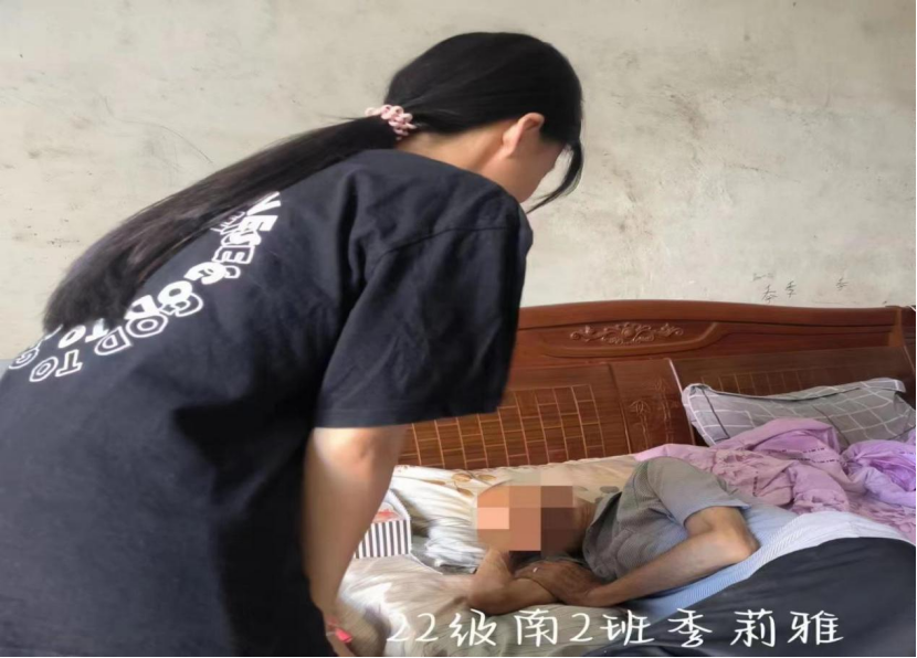 活动中,同学们走进鳏寡老人家中,利用所学专业知识,对久病在床的老人进行翻身、擦洗等日常照护;为老年人普及慢性病预防、膝关节保健、白内障预防、饮食习惯、肿瘤预防等健康保健知识;指导老人使用智能手机,丰老年人的业余生活;为老年人送慰问品、陪老人聊天,帮助收拾家务、打扫卫生等,使老年人感受到社会大家庭的温暖。同时,同学们还走进留守儿童家中,为小朋友们讲解预防近视、保护牙齿、清洗手臂等卫生常识,指导大家如何在日常生活中护牙爱眼讲卫生;还为暑期在家的中小员工普及了外伤包扎、心肺复苏、防中暑和防溺水等急救知识和技能,受到了大家热烈欢迎和一致赞赏。