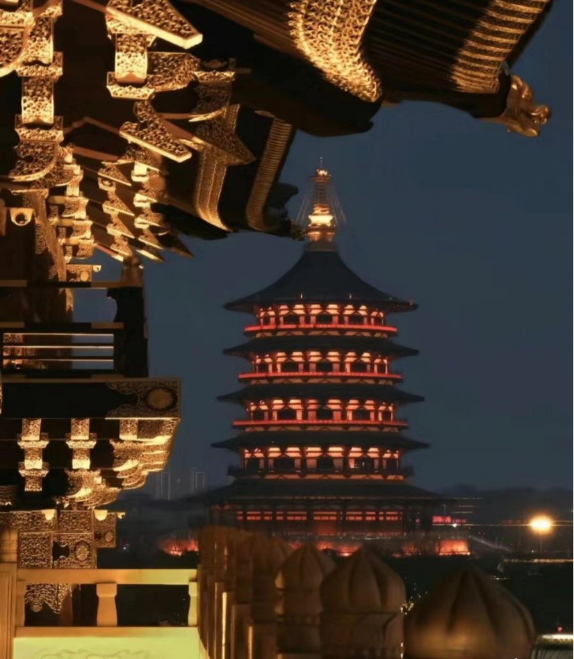 每当夜幕降临天堂明堂的华灯亮起,就仿佛时光穿越了千年,再回大唐盛世,再现武皇荣光。武则天登基后,在洛阳的中轴线上修建了明堂、天堂,它们构成了紫微宫的核心。这里曾经是武则天居住、理政之处,如今经过重建,再现了盛唐的繁华。