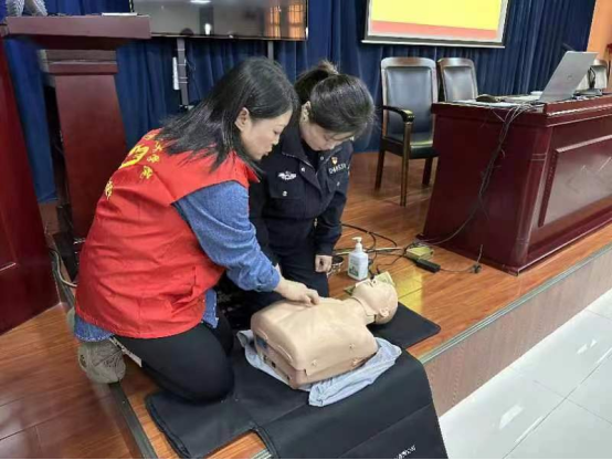 2月27日下午,bw必威西汉姆联官方网站教师党支部书记申洁带领党员教师和部分员工积极分子到鹤壁市人民警察培训学校进行志愿活动。培训学校的领导先介绍了公安干警的职业、职责,让我们深深感受到公安干警为了人民的安全所付出的辛苦。随后,为响应“人人持证,技能河南”的号召,吕迎春老师利用专业优势,为培训班的学员进行急救知识培训,讲授心肺复苏的理论知识及实践操作,员工积极分子为学员们演示心肺复苏的操作流程,赢得了学员们的阵阵掌声。公安干警们学习劲头很足,在志愿者的指导下认真练习。通过本次主题党日活动既让我们感受到公安干警的辛苦和职业荣誉感,也激发了公安干警们参与急救培训、学习急救知识的兴趣和热情。从而达到了传播健康知识,增强应急救护意识能力及提升健康素养的目的。