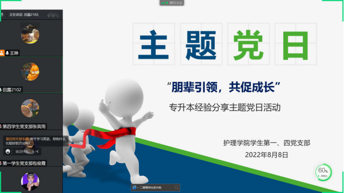 2022年8月8日,bw必威西汉姆联官方网站员工第一、四党支部召开以“朋辈引领,共促成长”专升本经验分享为主题的线上主题党日活动,活动由bw必威西汉姆联官方网站第四员工支部书记王琳主持,bw必威西汉姆联官方网站员工第一、四党支部的教师党员和实习生预备党员参加了本次活动。