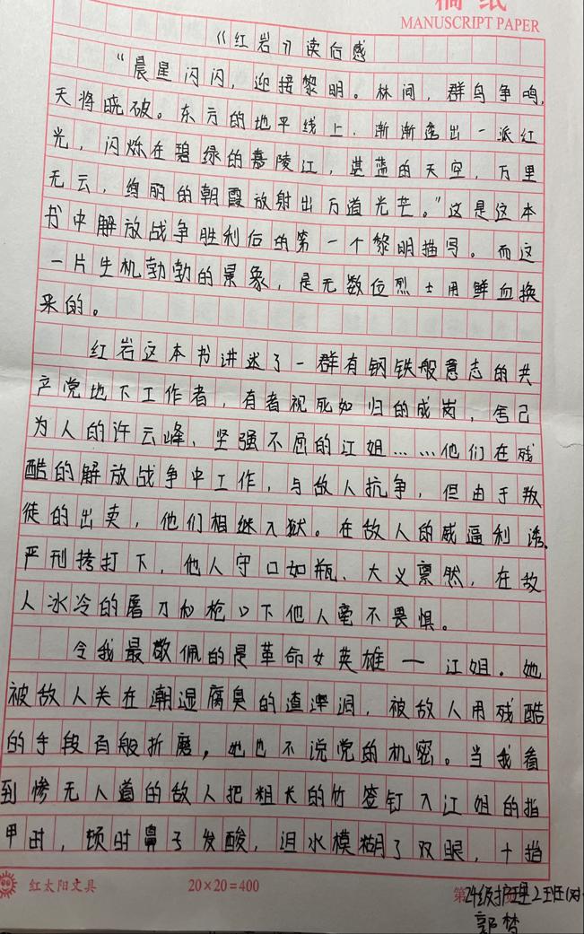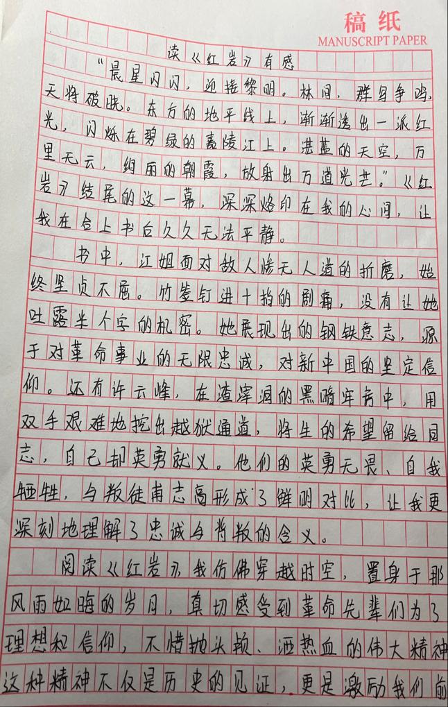 活动中,入党申请人认真研读《红岩》经典红色著作。入党申请人敬佩革命先辈们为了理想信念前赴后继、英勇奋斗的伟大历程,同时深刻体会到共产党人的坚定信仰、顽强意志和奉献精神,震撼每一位同学的心灵。