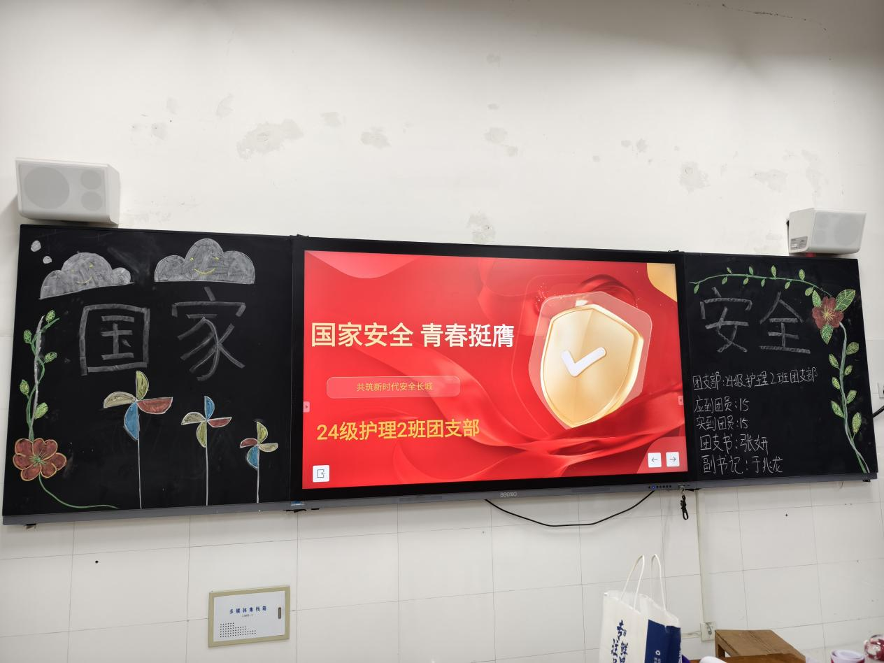 为深入学习贯彻总体国家安全观,引导青年学子增强国家安全意识、厚植家国情怀,在第十个全民国家安全教育日来临之际,护理学校团总支组织各团支部结合实际于2025年4月13日在诚信楼召开“国家安全·青春挺膺”主题团日活动。
