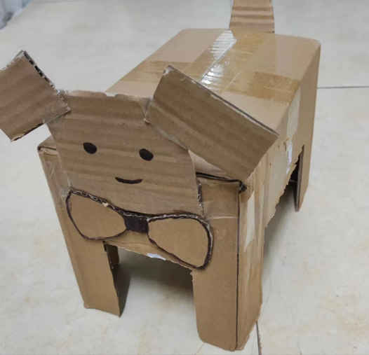 活动前期,党支部通过线上线下多渠道宣传,号召同学们收集塑料瓶、旧纸箱、易拉罐、废布料等闲置物品。活动现场,同学们热情高涨,以小组为单位分工协作。大家充分发挥奇思妙想,利用剪裁、编织、拼接等技巧,将废旧材料重新赋予生机。有的小组将塑料瓶改造成多层立体花盆,有的用易拉罐制作出精美的小摆件,还有同学用废纸箱做成小狗,一件件兼具实用性与艺术性的作品纷纷诞生。
