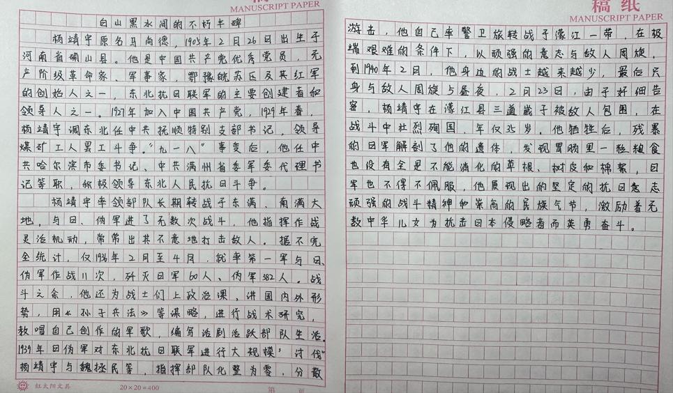活动中,同学们围绕李大钊、赵一曼、焦裕禄等红色历史人物,结合史料学习与感悟,撰写人物介绍短文。大家聚焦人物生平事迹、精神品质及时代价值,用文字追溯革命先辈的奋斗历程,感悟初心使命,在重温历史中感悟初心使命,在缅怀先烈中汲取奋进力量,同学们将以红色人物为榜样,把崇敬之情转化为学习专业知识、锤炼过硬本领的实际行动