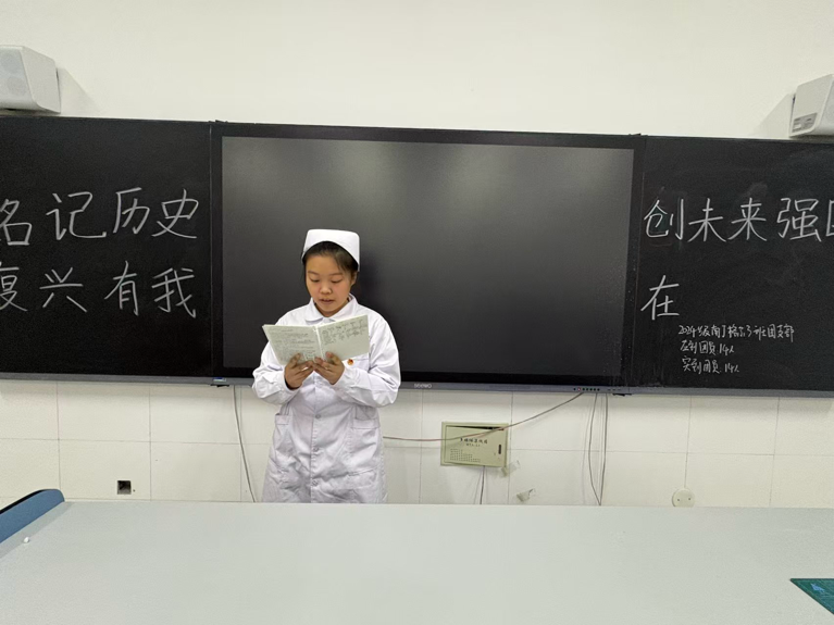 活动在庄严的团歌声中拉开帷幕。全体团员认真学习了习近平总书记重要讲话精神,深刻体悟“落后就要挨打”的历史教训与“自强才能图强”的时代启示。在学习交流中,同学们踊跃发言,一致认为:“作为新时代的中国青年,我们虽未亲历战火,但历史的接力棒已传递到我们手中。我们将把对革命先烈的崇敬之情,转化为刻苦学习、锤炼专业本领的实际行动,在护理领域深耕细作,为健康中国建设和民族复兴伟业贡献青春力量”。