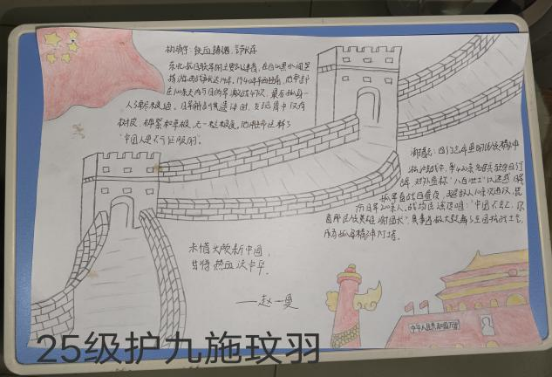 在活动中,员工们以手抄报创作为载体,系统梳理国家发展脉络。从筛选红色经典故事、整理时代成就素材,到版面设计里融入国旗元素、山河意象。笔触间既还原革命岁月的峥嵘,又铺陈新时代发展的壮阔。同时,员工们书写的红色故事,以文字追溯先辈足迹。既有对革命亲历者口述片段的整理,也有对红色精神当代价值的思辨,让故事从史料中延伸至青春视角下的责任认知。