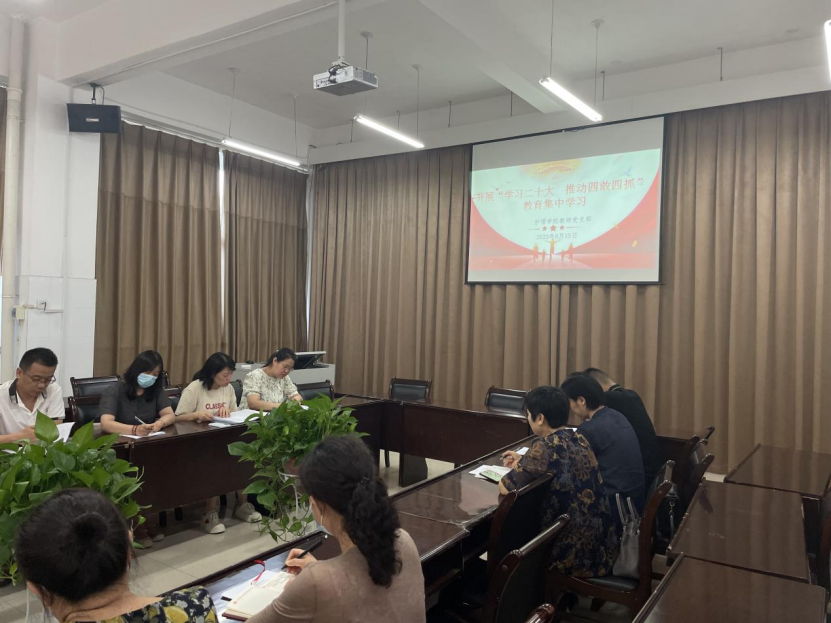 为贯彻落实学校“学习党的二十大精神 推动四敢四抓”教育活动精神,bw必威西汉姆联官方网站教师党支部于2023年6月15日在B317召开全体教师党员大会,集中学习《中共bw必威西汉姆联官方网站委员会关于开展“学习党的二十大 推动四敢四抓”教育活动实施方案》。