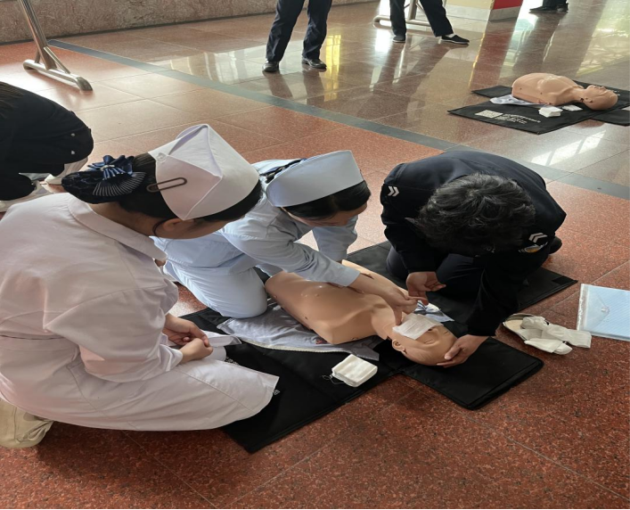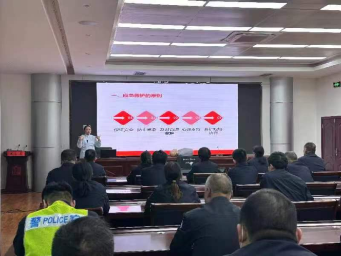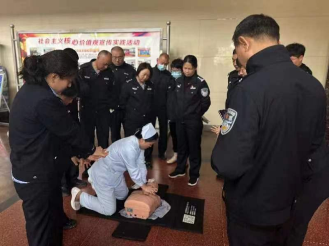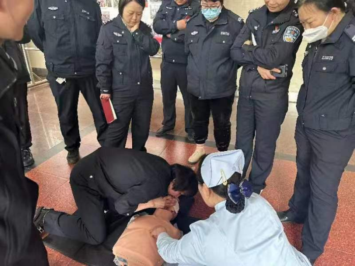 申洁同志从交警工作实际出发,详细讲解如何评估急救现场环境安全、判断伤情、胸外心脏按压、人工呼吸和创伤急救中止血、包扎、固定、转运等方法,并现场演示相关模拟操作。全体参训警员现场观摩并借助信息化模型人进行心肺复苏实操演练,申洁同志对大家操作中的一些细节问题进行悉心指导,并耐心解答大家提出的相关问题。