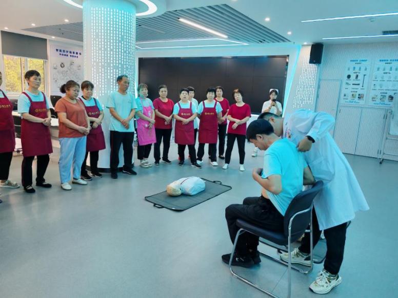 活动中,教师党员各展其长,有的针对老人体质情况,现场讲解保健小常识,手把手指导养老机构护理人员进行应急救护培训;有的指导老年照护员利用穴位按压,缓解老人常见的失眠、心痛等症状;有的针对大家询问较多的腰椎问题,一对一指导照护人员如何锻炼腰肌,防止腰椎间盘突出。随后,党员教师来到老年活动区域,为大家测量血压、推拿按摩、沟通闲聊,详细了解老人生活状态并给予适时健康指导。党总支成员用自己的耐心、细心和爱心履行着共产党员的使命担当,以实际行动体现出“为人民服务”的宗旨。得到在场照护人员和老年人的一致赞扬。
