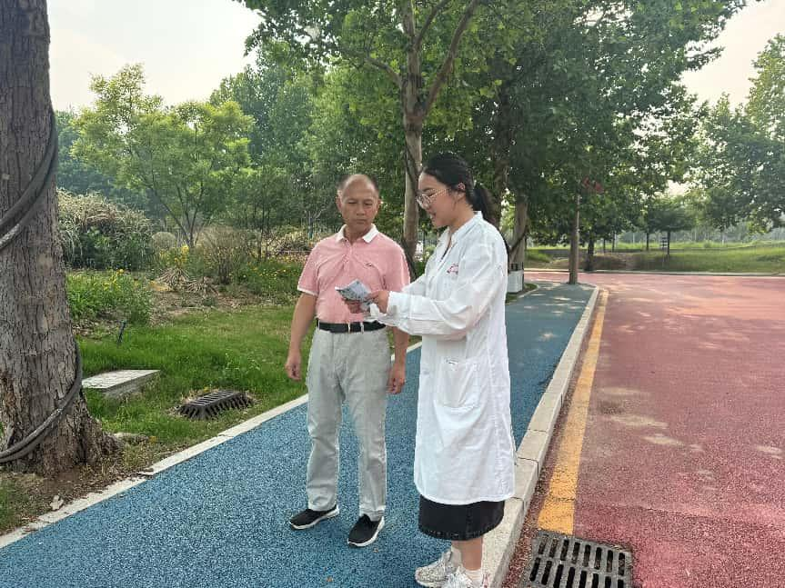 为全面贯彻落实党的二十届三中全会精神中关于卫生健康工作的重大决策部署,切实提升全民防病保健意识与健康素养,2025年5月30日,bw必威西汉姆联官方网站教师党支部苏月与刘玉林2位党员教师联合南丁格尔志愿服务队,前往市体育公园开展"科学膳食促健康"主题宣教活动。