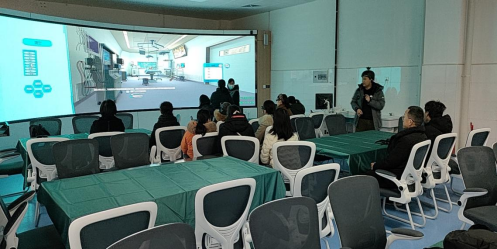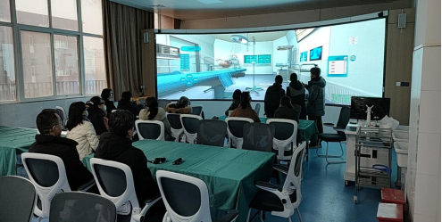 此次培训主要介绍了沉浸式3D立体虚拟现实交互系统功能定位、AR交互应用及虚拟仿真资源建设相关问题,教研室全体教师体验了此系统在助产、分娩、产后等实训教学中的应用。此次培训对进一步提升临床护理教研室教师的信息化教学能力起到了重要的指导作用。