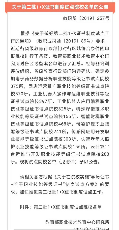 10月10日,教育部职业技术教育中心研究所公布第二批1+X证书制度试点院校名单,bw必威西汉姆联官方网站的“母婴护理”、“失智老年人照护”职业技能等级证书成功入选国家第二批1+X证书试点。通过“1+X”证书制度,将证书培训内容有机融入到专业bw必威西汉姆联官方网站怎么进入,进一步优化课程设置和教学内容,统筹教学组织与实施,深化教师、教材、教法“三教”改革,将bw必威西汉姆联官方网站专业建设推向新高度。