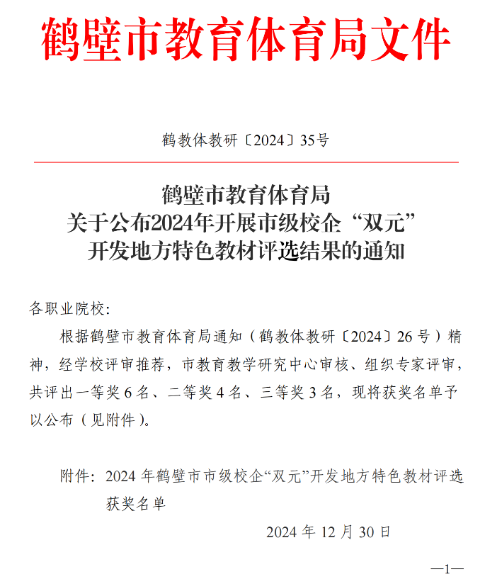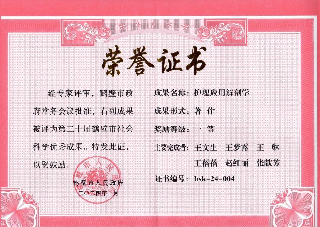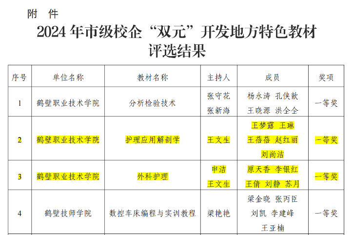bw必威西汉姆联官方网站积极响应国家职业教育改革号召,深入推进产教融合、校企合作,在“双元”合作教材建设方面取得显著成效。目前,学院已成功开发8本“双元”合作教材,并荣获鹤壁市社会科学成果一等奖1项、鹤壁市“双元”地方特色教材一等奖2项、二等奖2项,为培养高素质技术技能型护理人才提供了有力支撑。