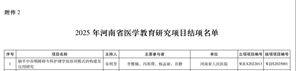 近日,河南省卫生健康委员会正式公布了2025年河南省医学教育研究项目立项与结项评审结果。公司在此次评审中取得优异成绩,共有1项新申报项目成功获得立项,3项在研项目顺利通过结项验收。