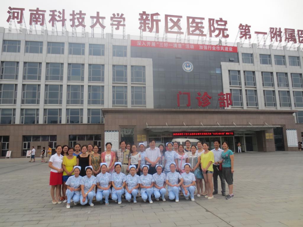 河南科技大学第一附属医院位于千年帝都洛阳,是集医教研、预防保健于一体的省直综合性医院,三级甲等医院,全国百佳医院,全国百姓放心医院,医院占地311.51亩(其中新区医院占地239亩),开放床位1600张,开设临床科室56个。医院年门诊量达54万余人次,年出院人数近4万人次,完成手术1.25万例。医院现有在职职工1500余人,其中博士生导师1名,硕士生导师52名,博士32名,硕士179名。医院拥有教授、主任医师63人、副教授、副主任医师171人。医院于2012年与学校签署实习合作协议,每年派送实习生50人,黄英茹等三十余名同学在医院就业。