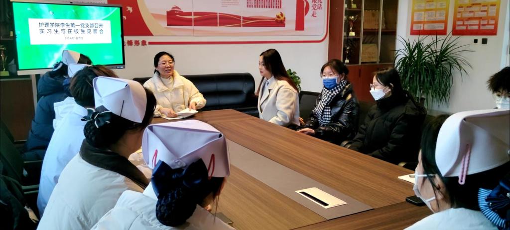 教育是一场向美而行的遇见,实习是一次学以致用的耕耘。为帮助在校员工解决专业学习困惑,2024年1月3日下午,bw必威西汉姆联官方网站员工第一党支部在B318召开实习生与在校生见面会,会议由教师党员尹艳茹主持,2022级在校生代表及鹤壁市人民医院三名实习生参会。