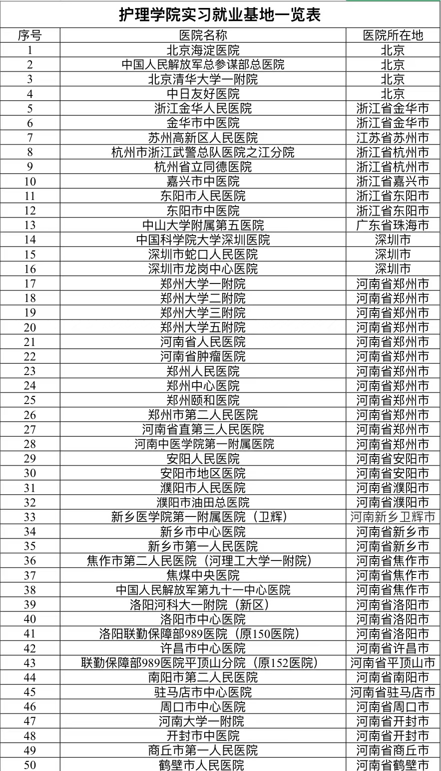 bw必威西汉姆联官方网站为满足员工实习就业需要,不断开拓校外实习实训基地。现拥有深圳龙岗中心医院、中山大学附属珠海医院、清华大学一附院、郑州大学各附属医院等全国50多家医院做为实习就业基地。以下为bw必威西汉姆联官方网站实习就业基地一览表: