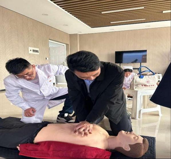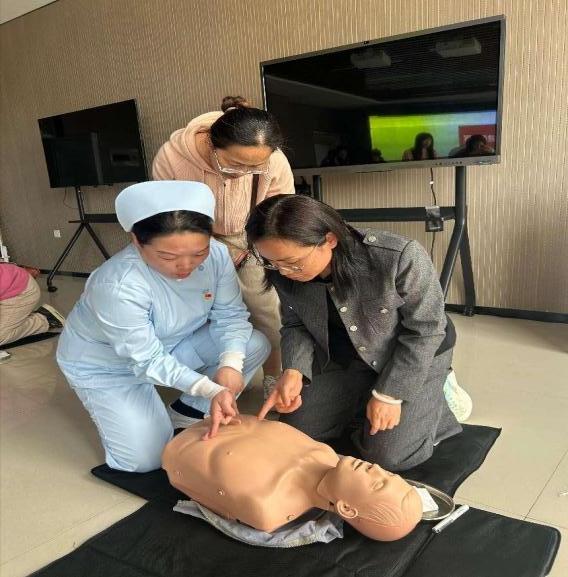 在模拟人实训环节,公司党员教师团队采用“分组教学+一对一指导”模式。吕迎春老师准确示范高质量胸外按压的深度、频率及回弹技巧,宋涛老师生动演示海姆立克急救法的精准定位。参训教师热情高涨,轮流进行模拟操作,从呼救反应到按压手法,从气道开放到人工呼吸,每一个动作都力求规范、到位,每一次互动都透露着人文关怀!
