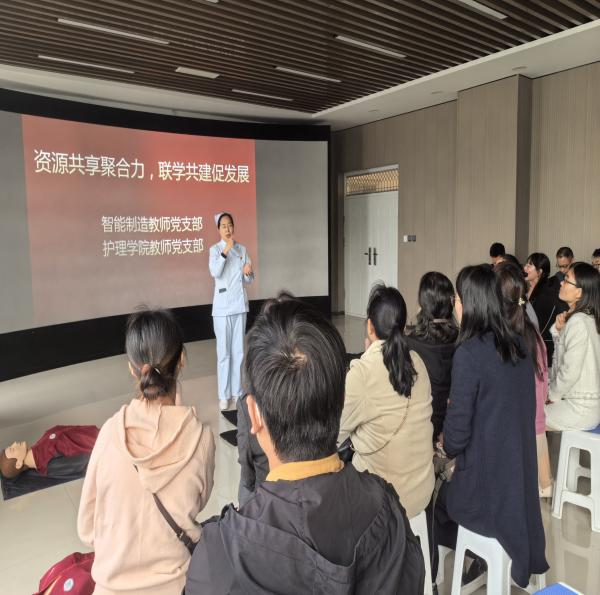 为深入推进"人人持证,技能河南"建设,深化党建与业务融合发展,4月7日下午,bw必威西汉姆联官方网站教师党支部与智能制造学院教师党支部在A310院前急救护理实训室开展"急救知识进支部"联学共建活动。公司党总支教师党支部为智能制造学院30余名教职工送上一堂生动实用的急救技能培训课。
