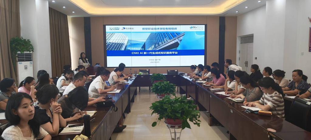 在“技能提升”环节,中国知网华中区讲师廉宁寒以《CNKI AI新一代生成式知识服务平台应用实践》为题,聚焦“AI+文献检索”场景,现场演示智能选题推荐、学术趋势分析、文献综述生成等核心功能。超星集团培训讲师代亚鸽以《超星智慧课程建设与应用》为题,系统解析“线上资源开发-混合式教学设计-虚拟仿真实验构建”全流程。同时,组织全体教师线上学习《人工智能赋能职业教育专题培训》内容。提升了教师在文献检索、课程建设等方面专业技能