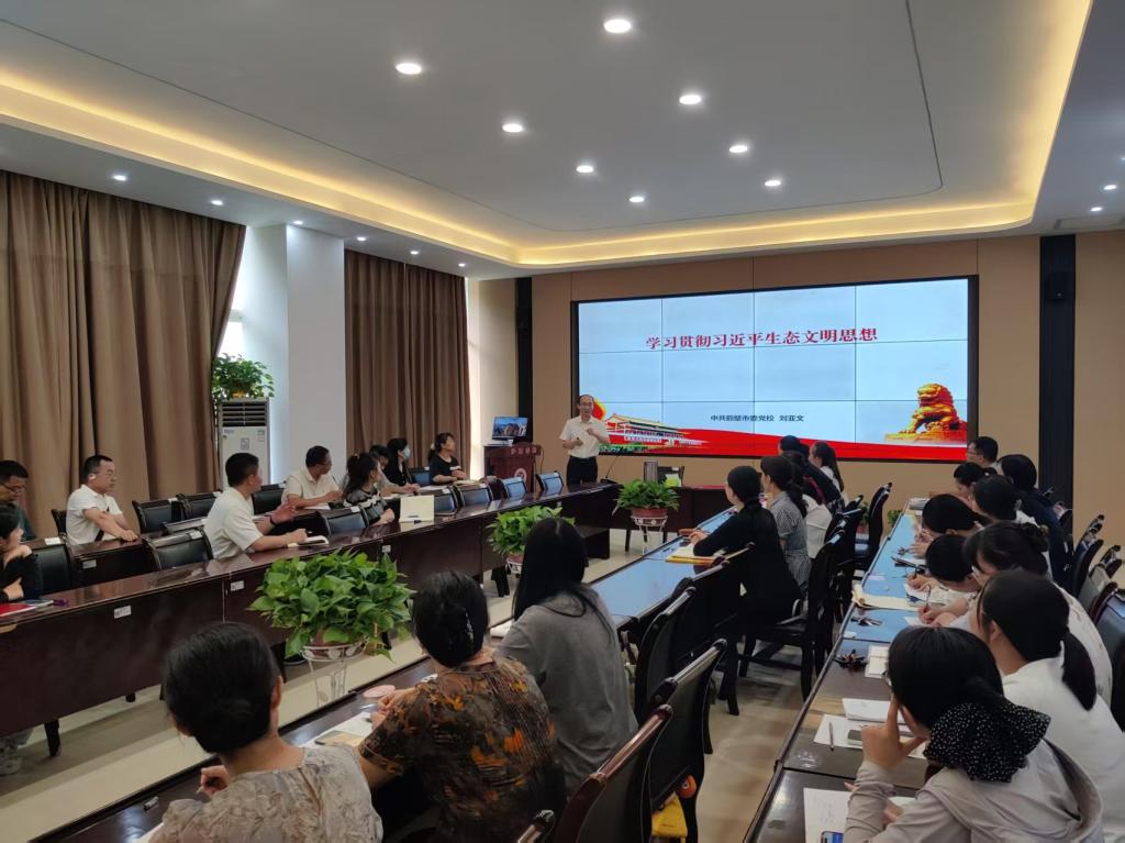 市委党校公共管理教研部主任刘亚文,对习近平生态文明思想进行深入剖析。同时,公司党总支书记杨尚玉、党总支副书记李家阳、党政综合办主任宋涛,分别围绕“体育馆案例以案促改”专题警示、高校民族宗教工作专题案例,以及经商办企相关规定进行专题讲解,以案为鉴,以案促改。