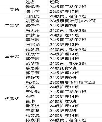 以下为获奖名单