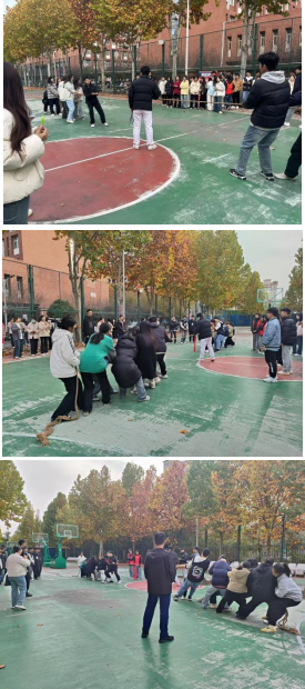 活动现场气氛热烈,随着哨声响起,场上的选手们双手紧握长绳,团结协作,重心下移,凝聚精神聚合力于一身,为班级拼尽全力。观赛的同学们也热情高涨,为队伍呐喊助威。伴随着一声哨响,赛场上随即响起一片胜利的欢呼声。拔河比赛不仅是力量的竞技,更是战术的较量,是一条朴素的麻绳上凝聚着珍贵的团结一致的心,同学们如火的热情与团结,让秋日的校园更加生机勃勃。