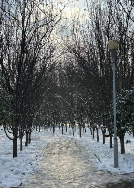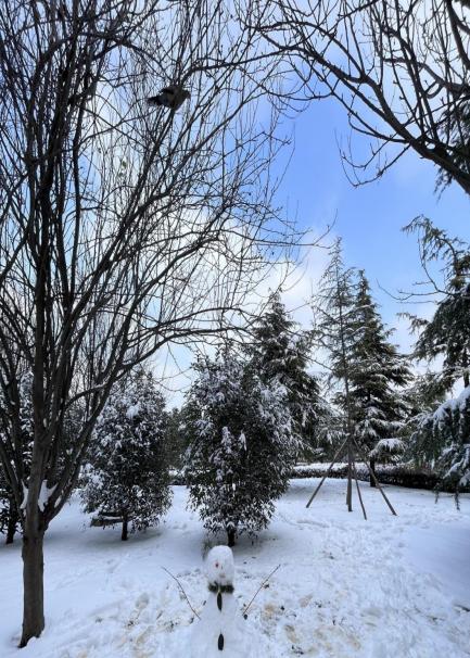 活动中,同学们用镜头的手机定格美好瞬间,展示了鹤院冬季的美景。纷纷扬扬的雪花,仿佛千万只小精灵在欢快跳舞,轻盈地飘扬着,落在大地上,给大地披上一层银色的外衣,令人眩目。