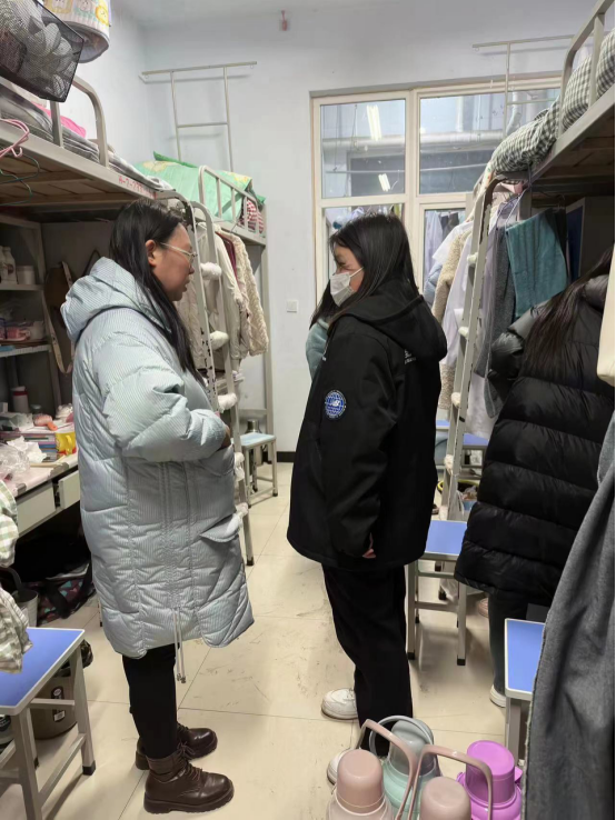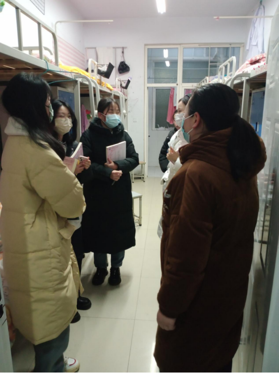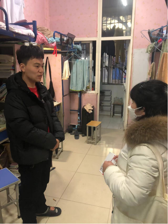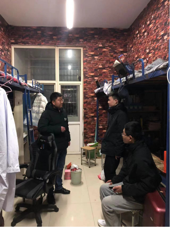 班会后,辅导员深入员工公寓,了解员工返校情况和思想动态,寝室卫生和宿舍设备维修等情况,排查宿舍安全隐患,解答同学们在生活中遇到的问题和困难,提醒同学们注意天气变化,注意个人卫生、宿舍卫生及宿舍安全隐患。