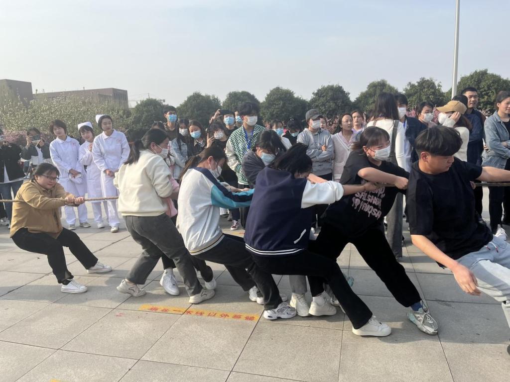 4月2日下午,护士礼仪训练在7个不同场地进行,2021级26个班级一千余名员工参加,训练内容涵盖护士仪容仪表、站姿、坐姿、蹲姿、端治疗盘、持病例夹、沟通技巧等。4月4日—5日,以“团结奋进 积极向上 健康活力”为主题的拔河比赛和以“跳出健康 快乐成长”为主题的跳绳比赛先后在海棠园广场拉开序幕,经过激烈角逐,最终两项项目各决出前三名。比赛现场,同学们热情澎湃,情绪高昂,氛围浓烈,将此次活动推向了高潮。