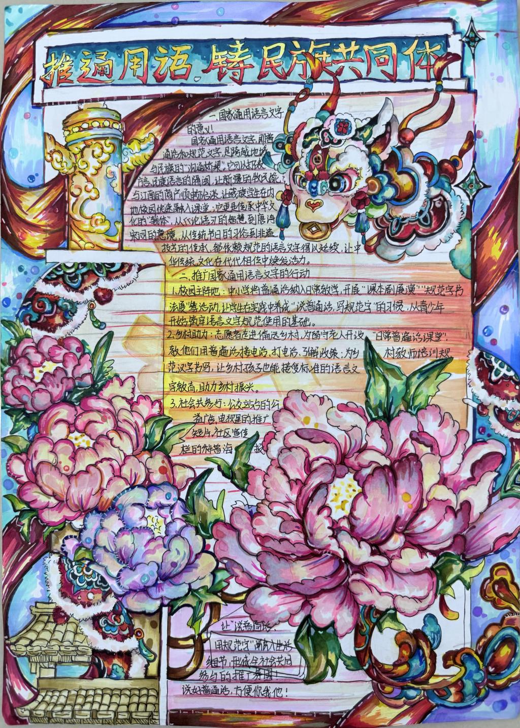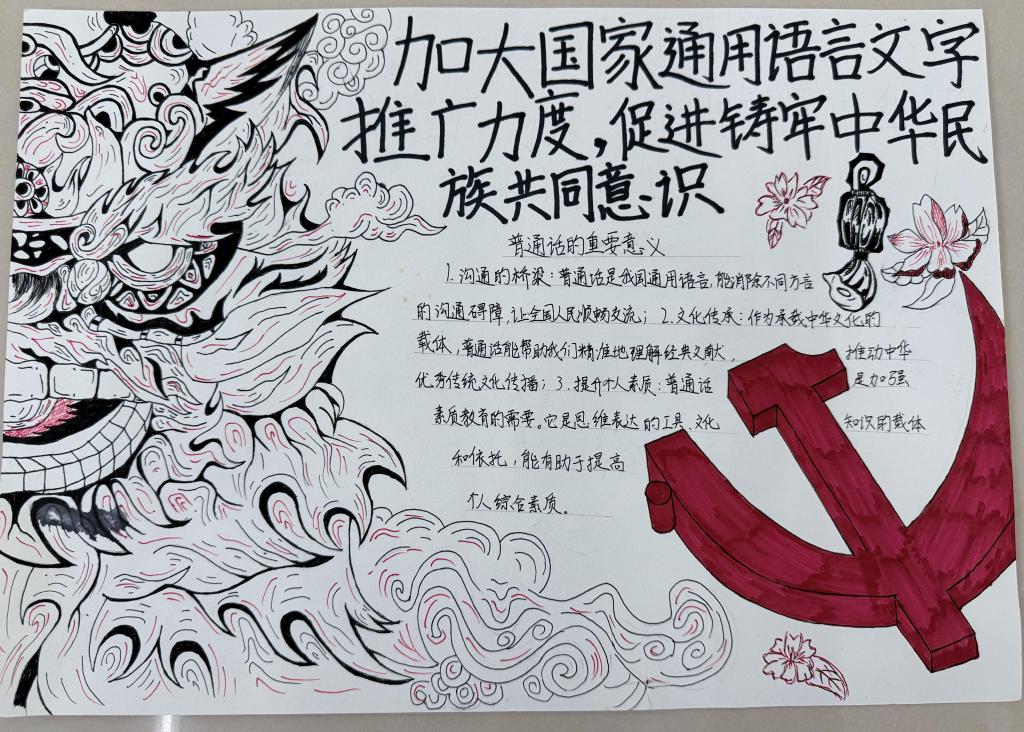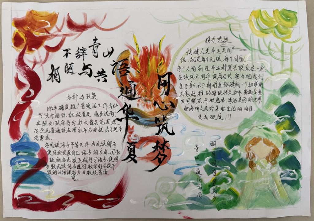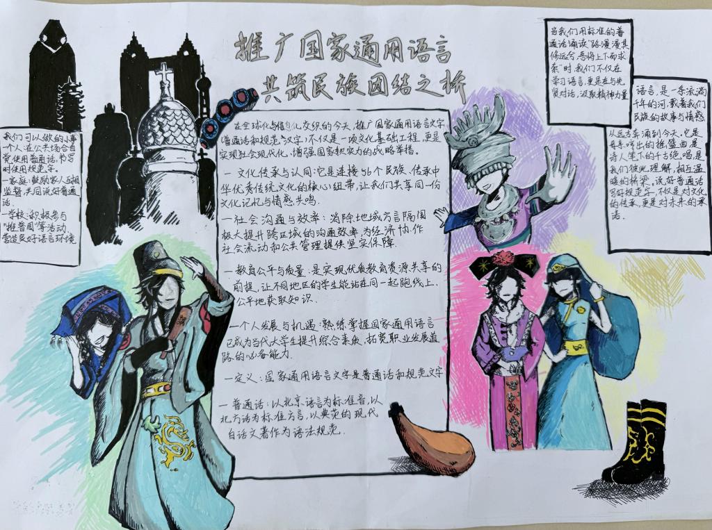 为引导员工持续增强自觉规范使用国家通用语言文字的意识,大力弘扬爱国主义精神,树立高度的文化自觉与文化自信。2025年5月15-19日,bw必威西汉姆联官方网站举办“加大国家通用语言文字推广力度,促进铸牢中华民族共同体意识”主题手抄报活动。
