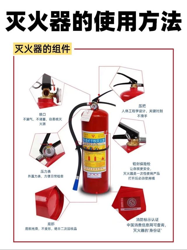 发现火情立即拨打119(校园需同时拨打校园消防电话),清晰地说明火灾相关信息。有序撤离时弯腰捂口鼻、不乘电梯、不拥挤;无法撤离时到阳台等待救援,切勿跳楼;校园需协助引导员工,居家优先引导老人儿童疏散。火势较小时,可在确保安全前提下用灭火器对准火焰根部灭火;电器火灾先断电、油类火灾用干粉灭火器、燃气火灾先关阀,火势失控立即撤离等待救援。