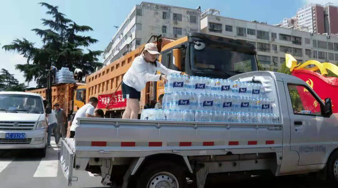 20级助产1班胡一涵,7月24日在许昌市长葛市报名参加了红十字协会的志愿者服务队,在长葛市体育馆为受灾群众搬运救援物资、发放饭菜。