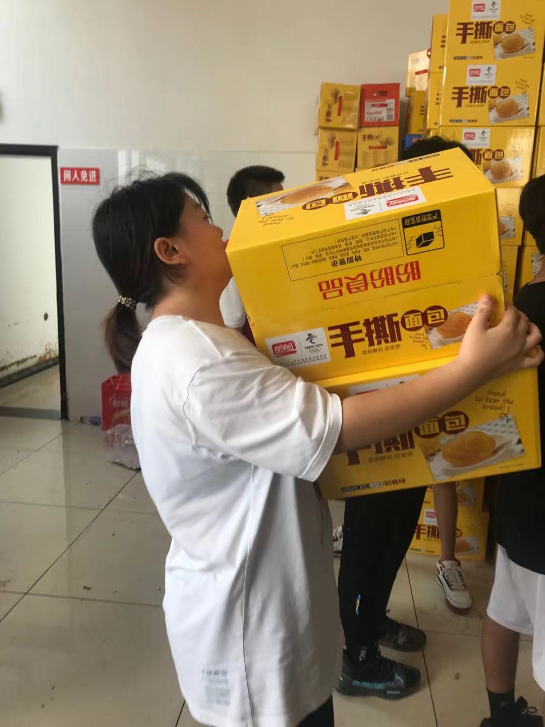 20级护理8班徐欣欣,7月24日起在鹤壁市淇县职业中专、中美物流园等地参与抗洪救灾志愿服务活动,为受灾群众搬运救援物资,打扫卫生清理场地等。