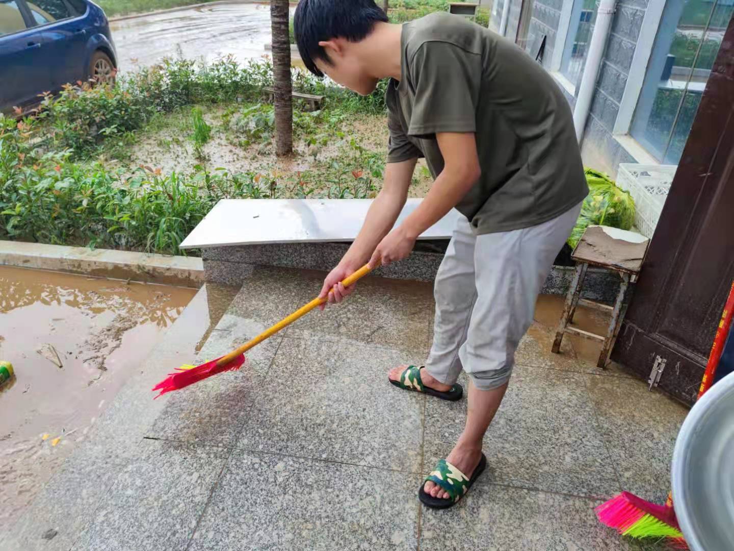 20级护理19班周淇翔,7月24日在河南省鹤壁市浚县七环参加抗洪救灾志愿服务活动,为受灾群众搬运救灾物资。