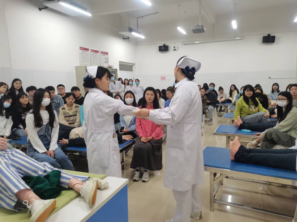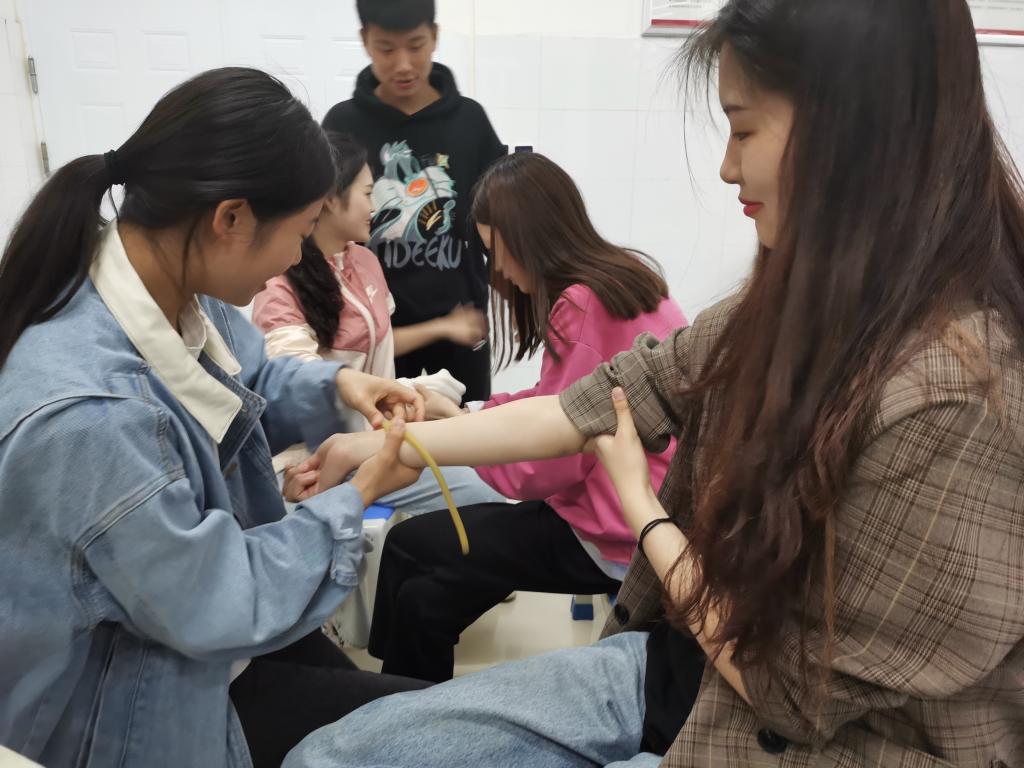 4月19日晚,在海棠苑诚信6号楼A307、A308、A310由35名志愿者对经济管理学院201名员工开展了“外伤包扎急救知识培训”。