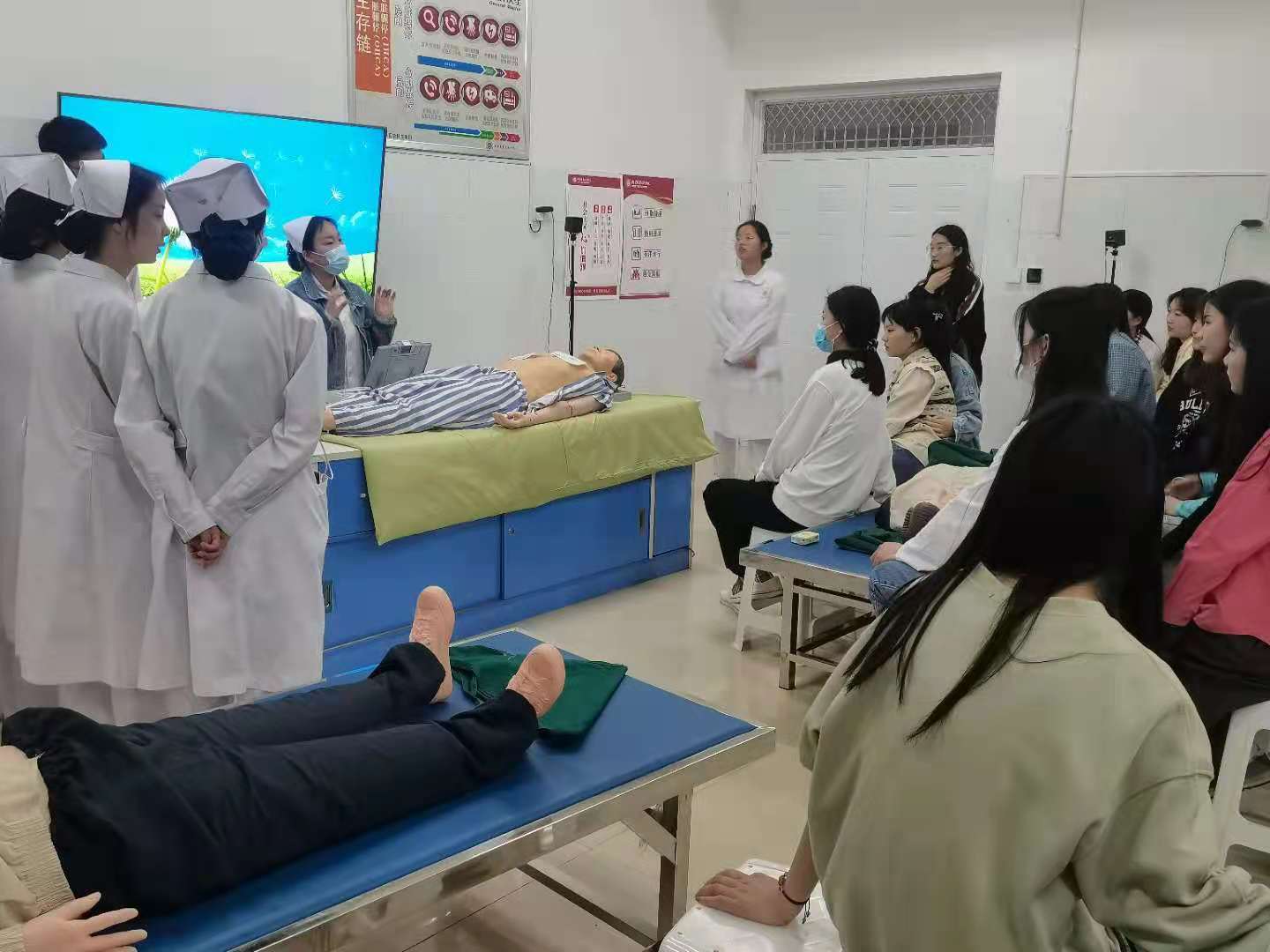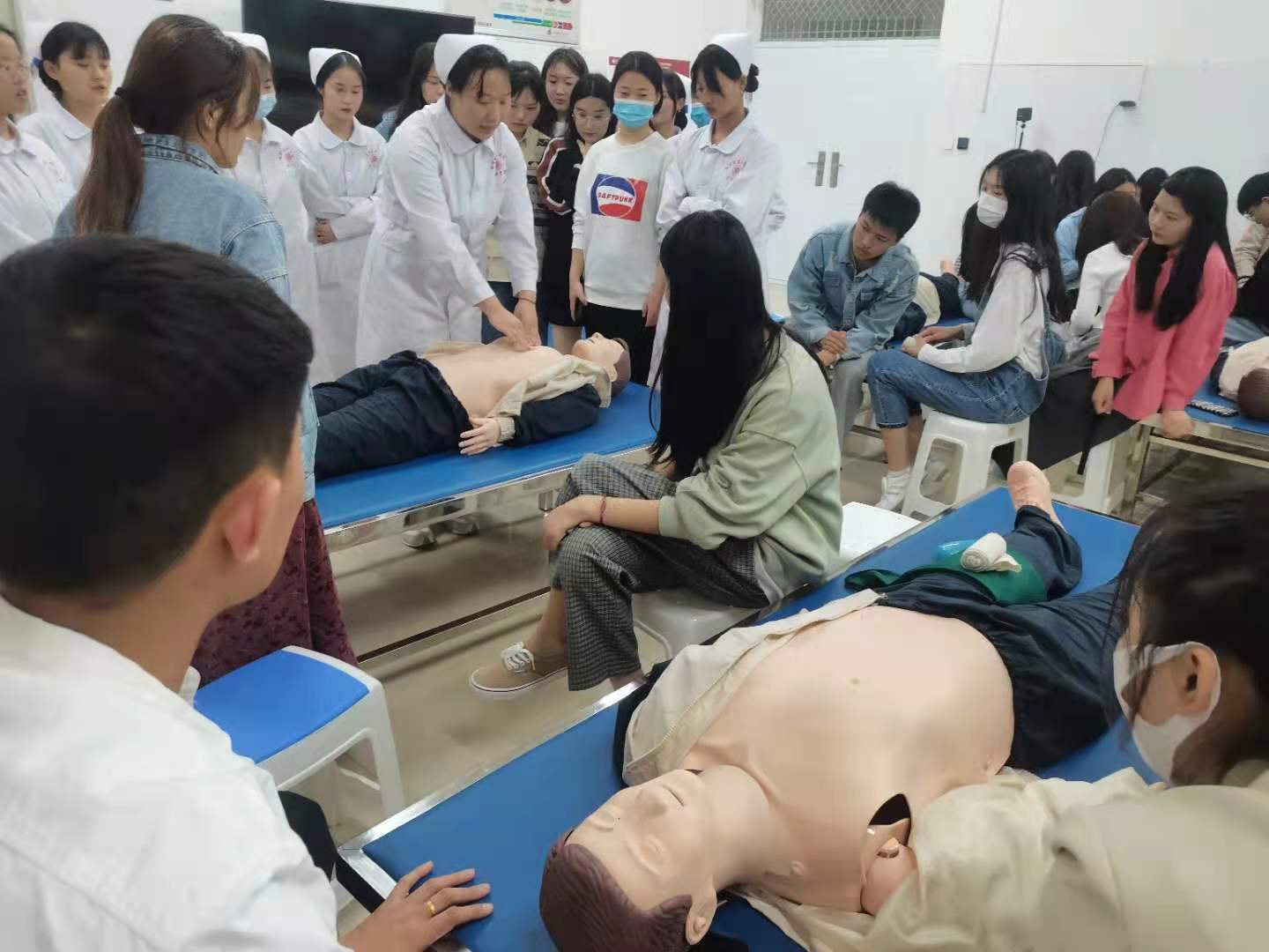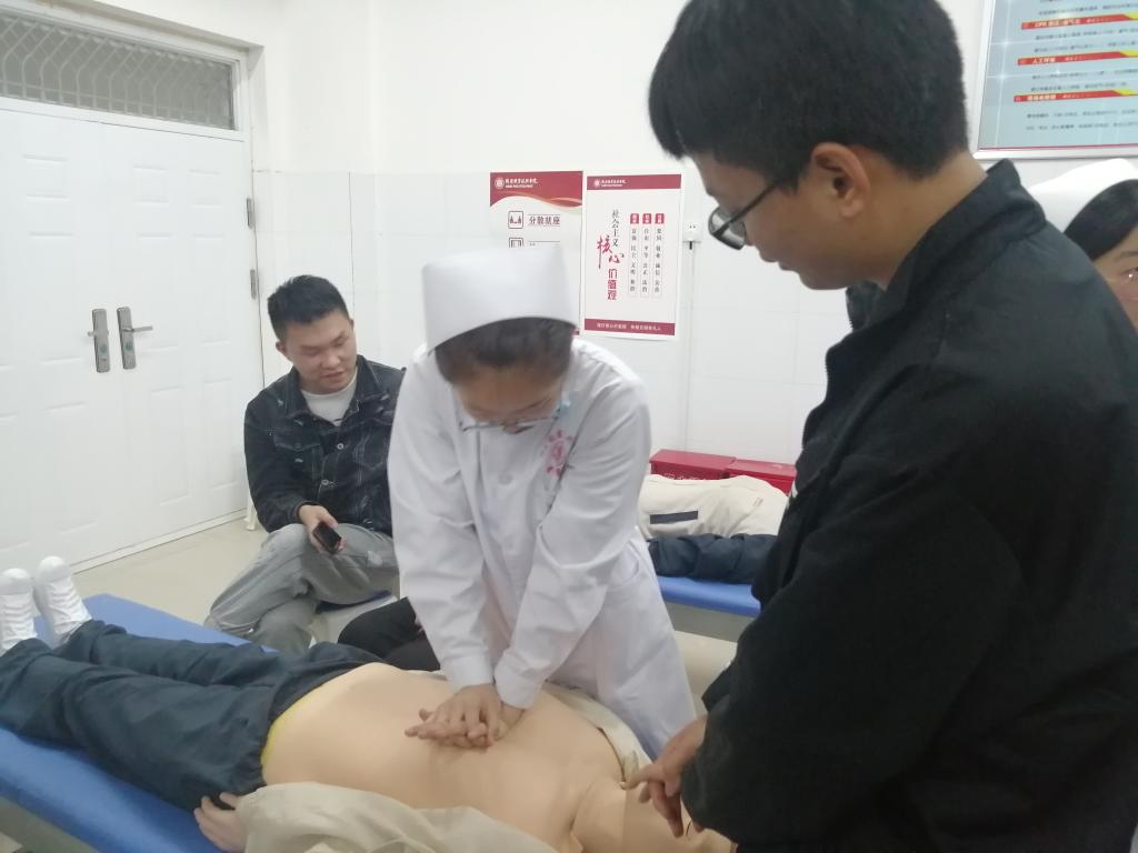 4月20日晚,在海棠苑诚信6号楼A307、A308、A310由35名志愿者对经济管理学院201名员工开展了“海姆立克法急救技能培训”、“除颤仪使用方式培训”等。