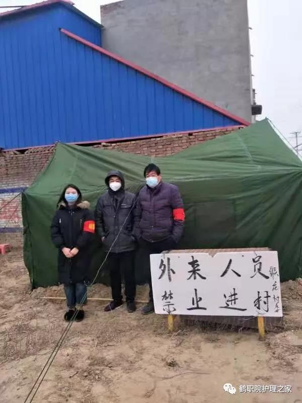 18级护理8班苗淼在河南省鹤壁市淇县高村镇石佛寺村口防止人群交往,对进入者测量温,严禁非本村人进入。