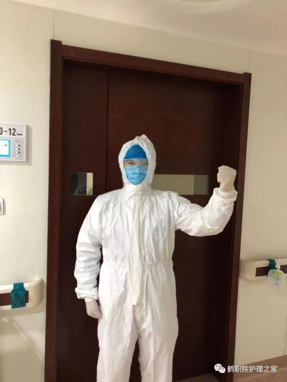 2013级护理16班孟登冠在河南省人民医院抗击疫情第一线。