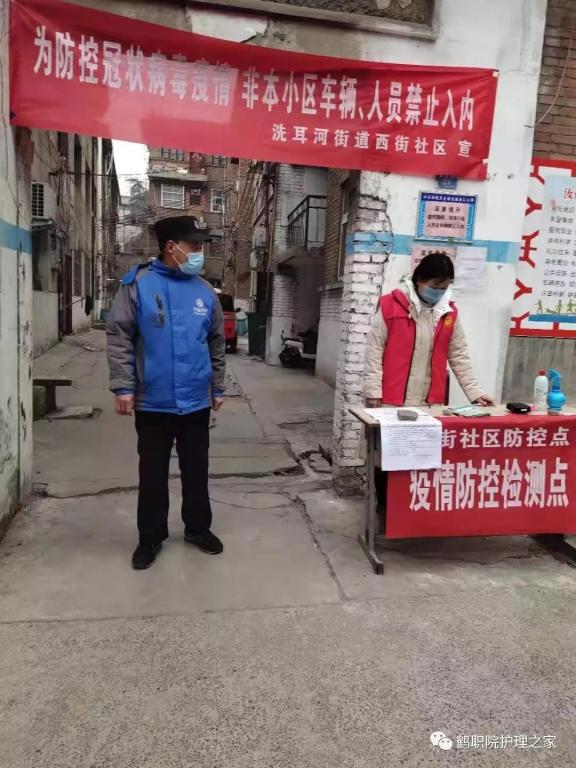 18级护理9班冯搏茹在河南省汝州市中大街邮政家属楼小区核对来往小区人员信息非特殊情况下禁止外出,测量体温,给小区来往人员消毒,用广播宣传防疫知识,排查是否有武汉回汝州人员信息。