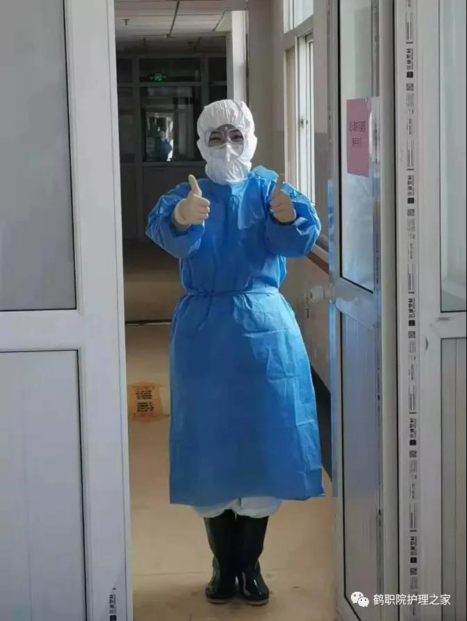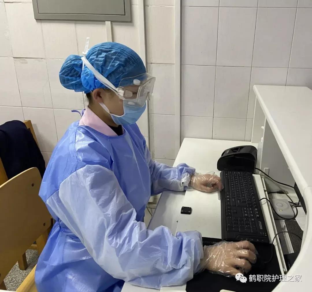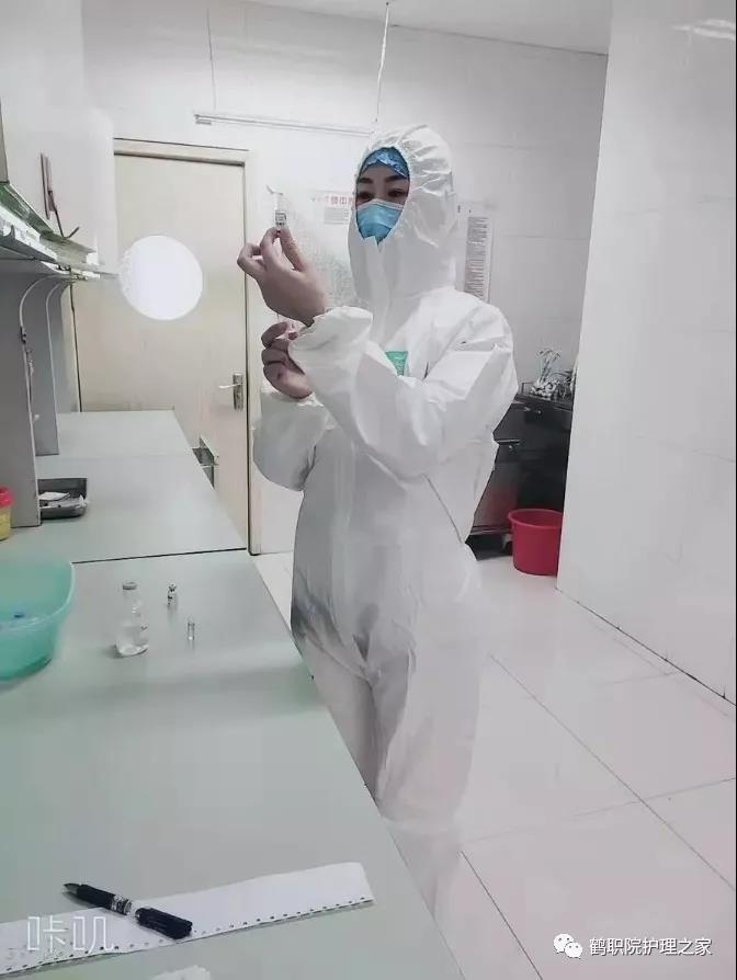 2010级护理五年制二班冯怡昕,在鹤壁市人民医院隔离病房,护理疑似新型冠状病毒患者。