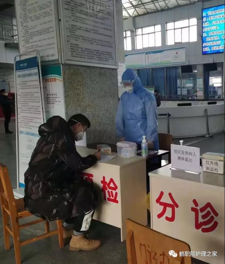 2015级南丁格尔3班李娜,在鹤壁市人民医院放射门诊,为疫区发热病人做体检。
