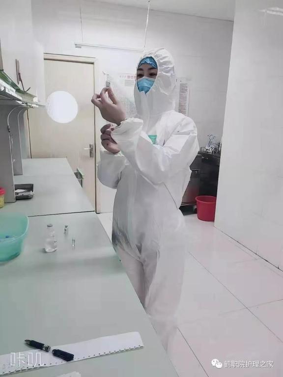 2004级护理五年制员工焦慧敏,在鹤煤总医院疫情防控第一线,志愿请缨到发热病房工作。