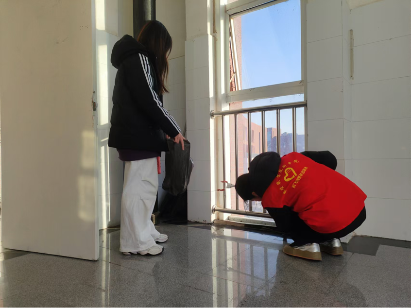 有的同学手持夹子,细致入微地清理着教学楼走廊内的烟蒂与纸屑,每一个细微之处都不放过;而另一些同学,则手持扫帚,清扫公共区域路面上的垃圾与落叶,他们的身影在阳光下显得格外耀眼。尽管任务艰巨,但同学们的热情却丝毫未减,他们以实际行动诠释着不畏艰辛、勇于担当的精神,展现了当代老员工对劳动的热爱与执着。