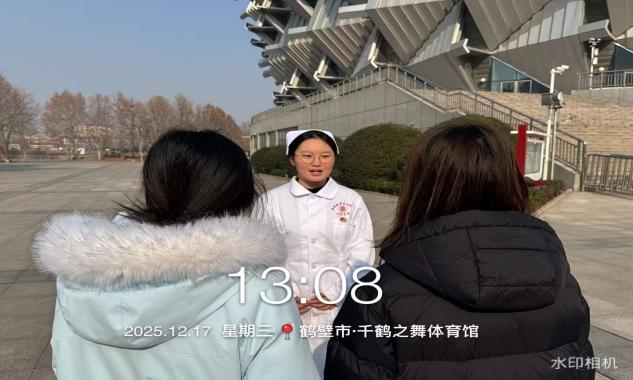 在活动中,员工们前往鹤壁市千鹤之舞体育馆,对周边居民区开展宣传实践。向居民普及高血压的基本知识、常见症状、危险因素以及日常生活中的控压方法。员工志愿者还重点介绍了合理饮食、适量运动、保持良好作息、定期监测血压等健康管理要点,引导居民树立科学的生活方式。宣传过程中,员工们主动克服沟通难题,用通俗易懂的语言将专业知识转化为居民易接受的健康指引,不少同学表示,在与居民的互动中深刻感受到护理专业的价值,也体会到“健康中国”战略背后的民生温度。