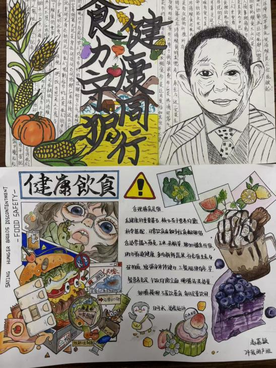 活动中,同学们以笔为媒,用多元创作传递健康饮食理念。有的以画笔勾勒均衡膳食的美好图景,展现新鲜食材的营养魅力;有的以文字科普膳食知识,分享科学饮食的实用技巧。大家精心设计版式、搭配色彩,将健康生活的追求融入每一处细节,一张张手抄报不仅是创意作品,更是传播科学膳食、守护身心健康的生动载体。